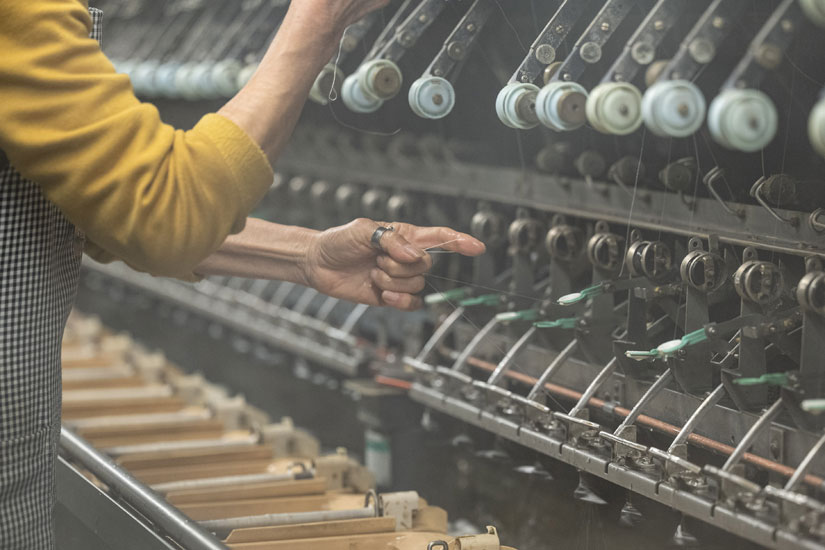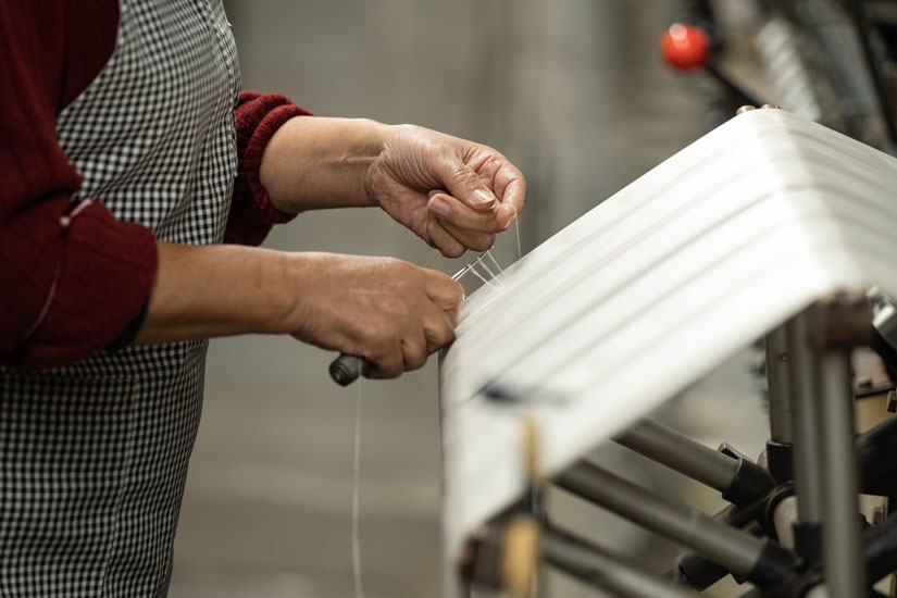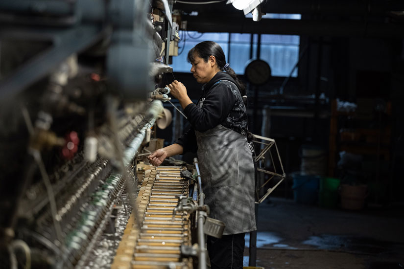 全国の製糸工場が激減しているにもかかわらず、碓氷製糸はなぜ稼働し続けていられるのか?それは、群馬県はわずかながらも養蚕農家が残り、蚕の飼育を守り続けている地盤があるから。そのうえで、相場に左右されない群馬オリジナルの蚕の品種を扱っていることも理由の一つ。また碓氷製糸は多品種の糸を小ロットで製造できることも強みだ。さまざまな太さの生糸が作れて、顧客の要望にきめ細かく応えられるという。それには高性能な機械と、良き技術者の存在なくしては成り立たない。