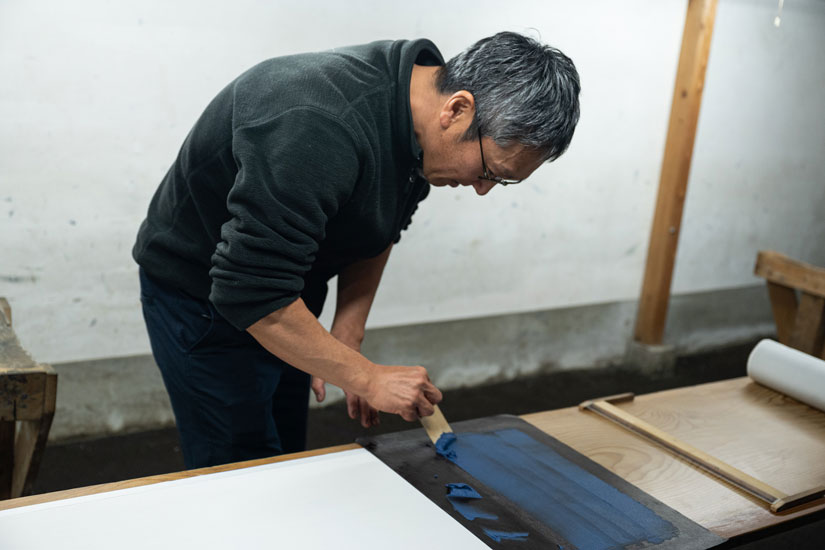 愛郎さんは今、江戸小紋の伝統的な染色技法を守りながら、新しい表現にも挑戦している。