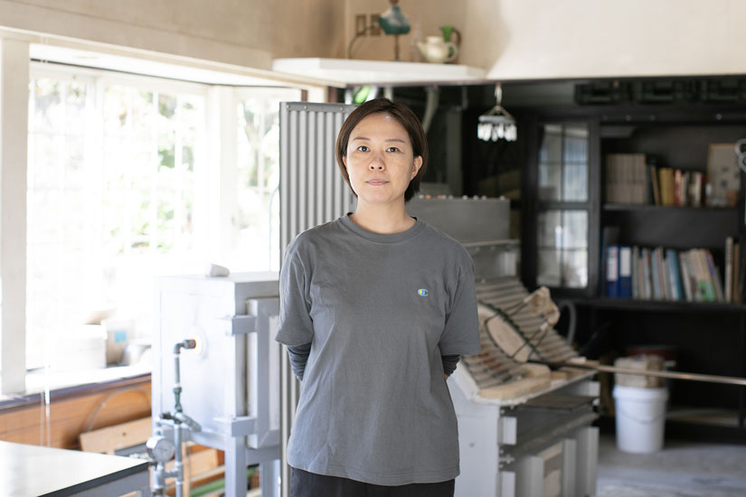 ガラスを仕事にするために勉強を続けようと、大学卒業後は富山ガラス造形研究所造形科に進んだ。2年間、ガラスの基礎となる理論、技法や必要なデッサンから、作家として独立するノウハウまで学んだのち、静岡県の『磐田市新造形創造館』でガラス工房のスタッフとして5年間勤務。同じスタッフとして働いていた夫の和さんが岡山県苫田郡鏡野町の『妖精の森ガラス美術館』に就職したことを機に、この地に移り住んだ。