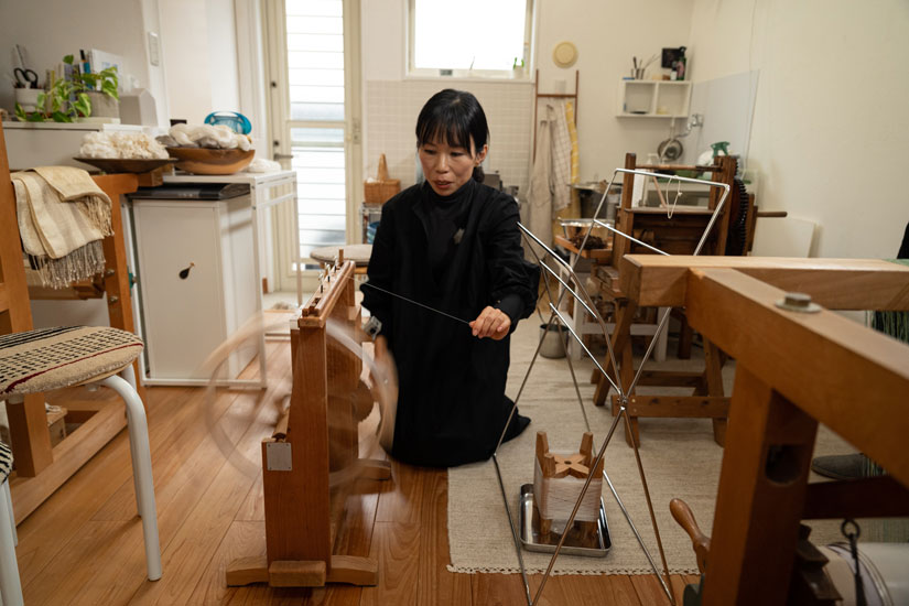 「木製の道具を使い、手でゆっくりと回しながら引いた糸でつくる織物の、ふっくらとしながらも滑らかで空気をはらんだ独特のしなやかさは特別です」