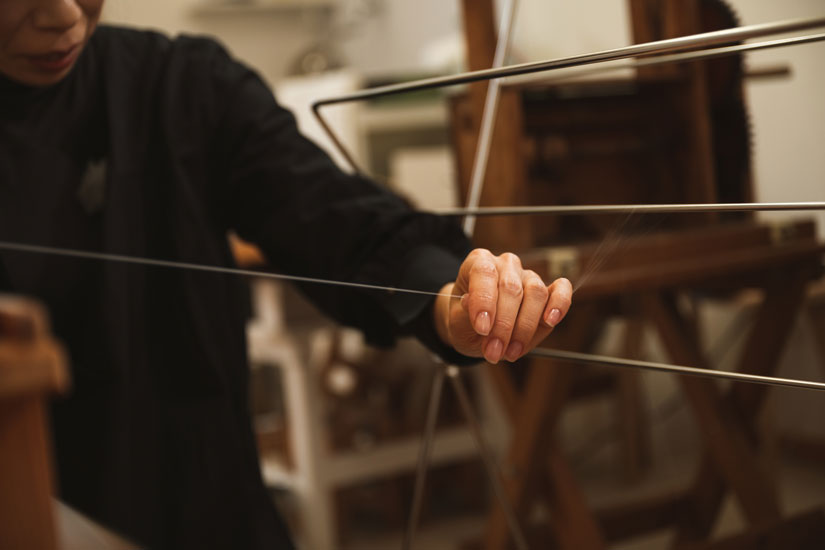 今までは機械でつくった糸の方が整っていてきれいという価値観でしたが、最近は手仕事の良さや伝統技法を残したいという思いを理解してくださる方が増え、そういったご縁のある方と取引させていただいています」