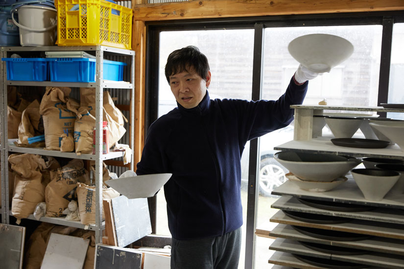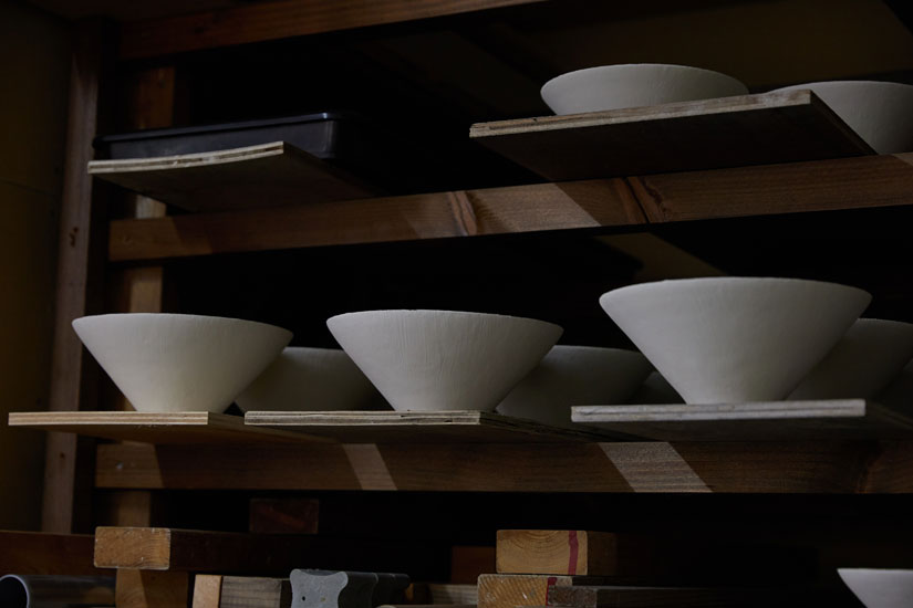 しかし田代さんは、この素焼きをせず、「生掛け」と呼ばれる器が半乾きの状態で釉薬をかけて、本焼きをする手法を取っている。