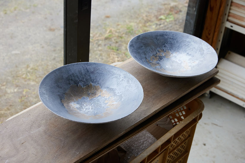 刷毛で塗ったり、コンプレッサーで吹き付けたりするのは時間と手間がかかる。薄づくりにすると歪みやすいリスクもある。それでも、その手間ひまを乗り越えた先にある仕上がりの質感や風合いの変化を田代さん自身が楽しみながら、目指す器を形にするため日々試行錯誤を重ねている。