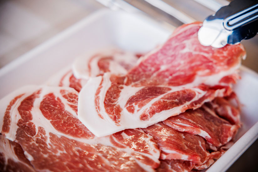 「宮城野ポーク」は宮城県で開発された銘柄豚で、止め雄に「しもふりレッド」を交配、きめ細やかな肉質と柔らかくコクのある風味、脂の甘み、さっぱりした食味が特徴だ。その中でも、出荷前の仕上げ段階に米を与え育てた豚は「宮城野ポークみのり」と呼ばれる。脂身にくどさがないため、しゃぶしゃぶで食べるとアクが出ず、さっぱりとした後味で人気を集めている。