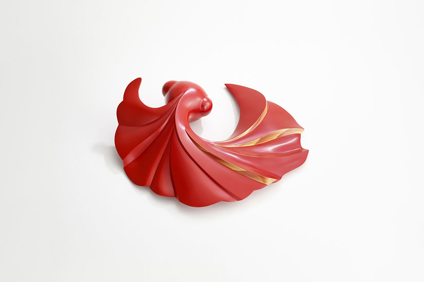 こうして漆芸を選んだ笹井さんは、当初は工房で器をつくる未来を思い描いていた。しかし、実際に手を動かすうちに器づくりの枠を越え、自分の感覚に正直にかたちを追い求めるようになっていく。心のおもむくままに進んだ結果、行き着いたのは自分の好きなかたちを追求できる漆のオブジェだった。