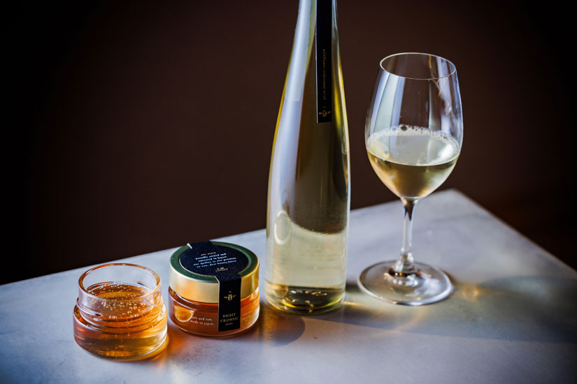 EIGHT CROWNSのミードは、 「WILDFLOWER TRADITIONAL MEAD」と名付けられ、2023年にアメリカの世界的酒品評会「BTI・ World Mead Challenge」で金賞を受賞した。酸味と甘味のバランスも絶妙で、日本酒のようなクリアな味わいも感じることができる。Maynardさんは当初、ミードの醸造にあまり乗り気ではなかったが、「様々な料理と相性抜群。ミツバチが集めた自然の恵みをそのままの状態で食卓へ届けたい」との思いから、追求を重ねたことが実を結んだ。