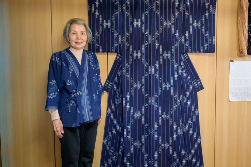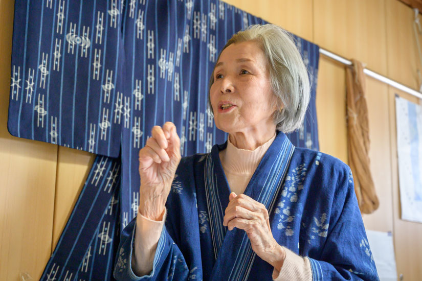 日本三大絣のひとつであり、愛媛の伝統工芸品の「伊予絣(いよがすり)」。54歳頃から機織りを始めた伊予絣作家の村上君子さん。伝統工芸展への挑戦、そして伊予絣に向き合う姿勢は、まさに“生きること=織ること”を体現している。