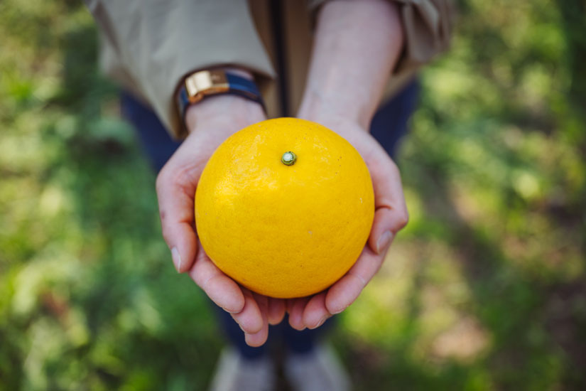 「自然は、その季節に人間が欲するものをうまく与えてくれているように感じます。寒い冬には温かそうなオレンジ色をした温州みかんが、暑い夏には見た目にも涼やかな黄色の河内晩柑がおいしくなってくる。暑さに参っていても、みずみずしくスッキリとした味わいの河内晩柑を食べると元気になります。夏にはなくてはならない柑橘のひとつです。今は一年中いろいろな果物や野菜が手に入りますが、季節感がないのは良いことなのか、悪いことなのか。旬のものは生産時の環境負荷もないし、何よりおいしいんじゃないかと思いますね」。