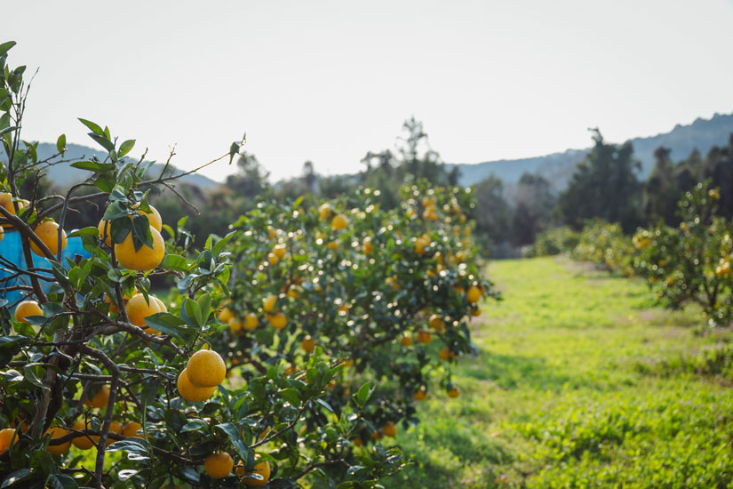 愛媛県における柑橘栽培の中心地である南予地方の柑橘園地は、急斜面につくられた段々畑が主流だが、吉本さんの園地は傾斜のない平地にある。第二次世界大戦中には「飛行場にできるんじゃないか?」と言われていたほど広く平らなこの土地を見て、愛媛県の柑橘栽培先進地である吉田町でみかんを作っていた人が「ここにみかんを植えてみたら?」と言ったことが吉本農園のルーツとなった。「祖父が柑橘栽培を始めようとした当時、ここは芋畑だったんです。周囲からは『なんで芋畑に柑橘を植えるんだ?』と反対されたらしいんですが、それを押し切ってやってみたら上手くいった。だから今があるんです。ここは雨が多く降るし、暖かい。北西の風が強く吹くので、まず防風林を植えて。温州みかんは雨を嫌うと言われていますが、土をきちんとつくればどんな柑橘でも栽培できることがわかってきました。おいしい柑橘が育つ、保水力があって水キレの良い土にするためには、有機物と微生物が大事なんです」と吉本さんは話す。