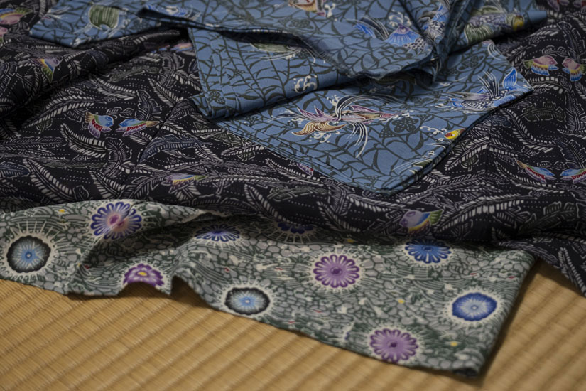 生地の素材に決まりはないが、絹や綿などが用いられることが多い。しばりがない分、多種多様な染め方ができるのだそうだ。