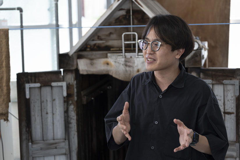 那覇空港からほど近い場所に工房を構える知念紅型研究所。現在の当主、知念冬馬さんは、京都でグラフィックデザインの勉強をし、大阪でデザイナーとして働いた後に、アートを深めるためにイタリア・ミラノへと留学した。そこで芸術作品や当たり前に残る歴史ある建物などを日常的に目にするなかで、「自分も、消費されずに残っていくものづくりがしたい。自分の世界を表現したい」という思いがかたまったという。いつかは継ぐつもりでいた家業の紅型、自分が行き着いた想いにぴったりだった。
