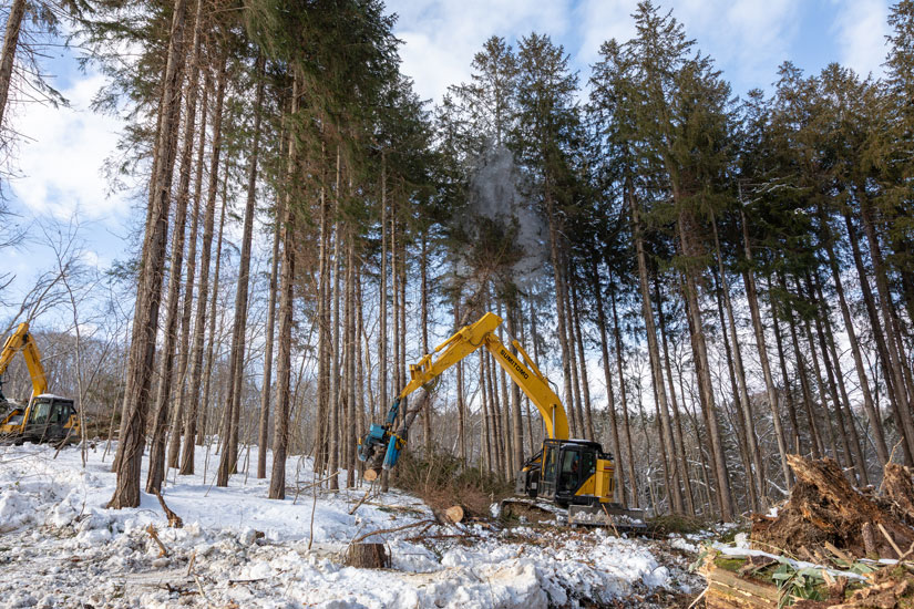 同社の北海道の社有林では、厳しい冬こそが収穫の最盛期となる。気温が氷点下まで下がり、雪が深く積もる北海道の冬こそが、質の高い木材を収穫するための適期なのだ。そこには、北国ならではの合理的な理由がある。