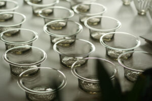 In creating her works, Ms. Kojiguchi places importance on the five senses of “sight,” “touch,” and “hearing. The glass that Mr. Kojiguchi finishes with his unique senses, not only by blowing glass but also by shaving and polishing, seems to embody the key to his creation, “Seeing with the hands. The glass seems to embody the key concept of his work, “to see with the hands”. This is how the glass has a smooth feel that cannot be felt with other types of glass.
