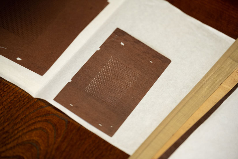 Aida Dyeing still has many of the valuable Ise katagami that Masao raised and protected. If used, they become worn and their durability deteriorates, and one day they will break and become unusable. When dyeing Edo komon, Airo takes great care not to put too much strain on the stencils and trusts in his own skills.