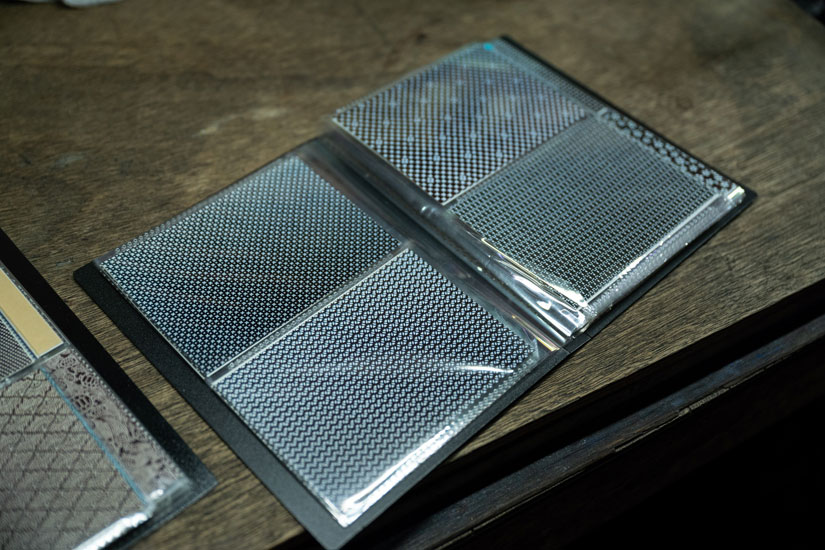 Some of the katagami in the workshop are so elaborate that one wonders if there are craftsmen in the world who have carved such katagami. Looking at such formidable katagami, one gets excited just thinking about how they can be used to create interesting works of art. At the same time, he says that the fact that such katagami are still in the workshop makes him feel great appreciation for his master’s greatness and his achievements.