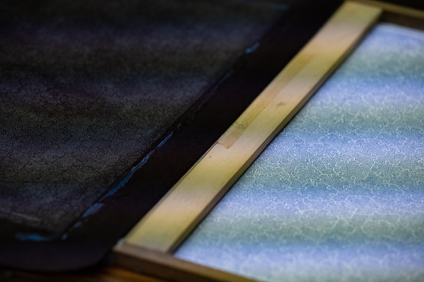 In the workshop, all the processes of dyeing Edo komon are done by hand using the precious Ise-katagami inherited from Masao.