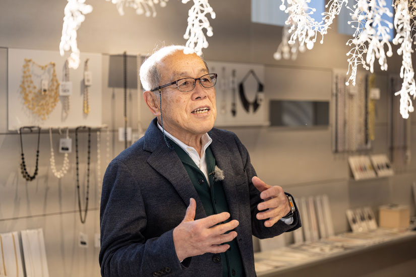When Mr. Katakura wanted to make an accessory like a pearl necklace using only silk thread at “OOO,” he was repeatedly told, “It is absolutely impossible. Nevertheless, he continued to think of ways to make the “impossible” and created a patented manufacturing method that only “OOO” could do. This is where Kasamori’s experience of turning “impossible” into “possible” came in, as he turned to the embroidery business and used his skills to increase profits.