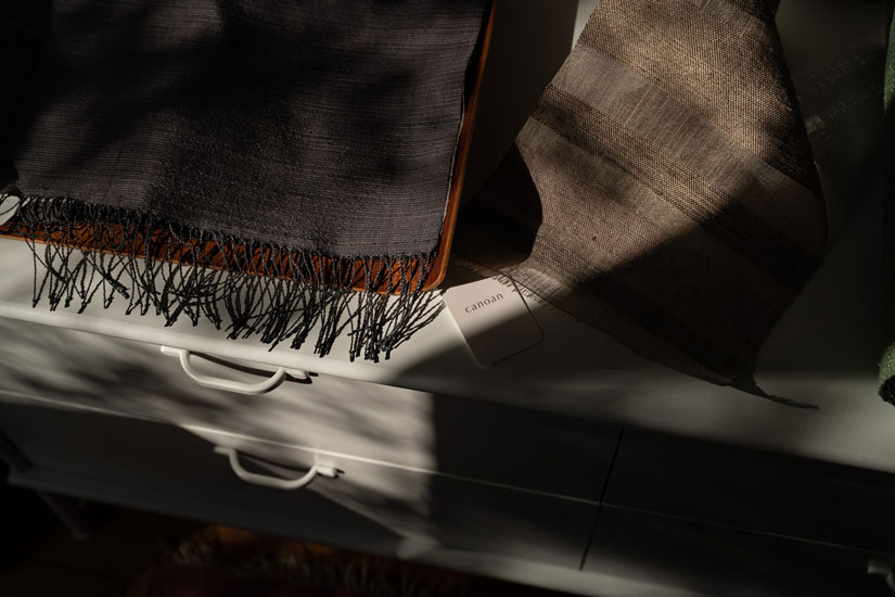 In order to inherit the now rare traditional technique of “Jyoshu Zaruri,” Mr. Nakano first studied spinning techniques at Usui Silk Mills, one of the largest silk mills in Japan, which produces 60% of Japan’s silk yarn, before opening the Zaruri dyeing and weaving studio “canoan” in 2003.