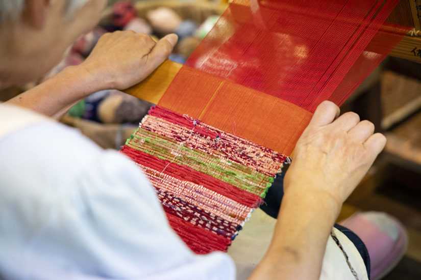 “Nowadays, everything runs on electricity with the push of a button. I feel it’s essential to teach children that, just like in the past, their own hands and feet can be the energy to create things.The reason Nanbu裂織 remains timeless is probably because everyone shares that feeling of cherishing things. My mission is to make more people aware of it,” says Kobayashi. Carrying on the tradition of Nanbu裂織 and the founder’s vision, and striving to create a society where everyone has a place, Kobayashi and her team continue weaving today. They weave, one step at a time, using colorful warp threads and strips of fabric as weft threads.