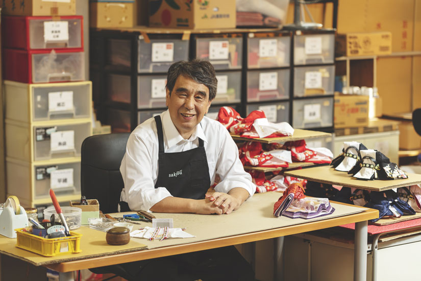 “Shizuoka had many artisans specializing in each component,” explains Kazuhito Mochizuki, the company’s third-generation chairman. “People who made the wooden bases, applied lacquer, painted maki-e designs, crafted metal fittings. Wholesalers would go around collecting these parts and assembling them into finished dolls.”